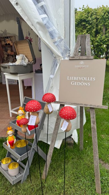 So zog es mich als Ausstellerin auf die wunderschönen Landpartien auf Schloss Gödens. Zwischen weißen Zelten und grünen Wiesen haben wir uns kennengelernt und geplaudert.. Diese Begegnungen sind bis heute der Treibstoff für meine Kreativität.